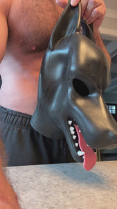 Silicone is such a comfort to wear. It's hypoallergenic, unlike latex, and has no odor. It's much squishier and stretchier than latex and I enjoy it a lot more myself! The mask has a mouth hole of course. One size fits nearly everyone. Unless you have a super tiny head Im pretty sure this mask would fit. Im 6 3 235 and wearing it in the video comfortably. This mask pairs REALLY WELL with our Huge Muscle Suit and Silicone Paws for the FULL FETISH FANTASY!