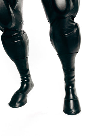 There is no hard support in the arch so walking in them is easy, and the hoof gives some support but if you want that full prancing pony effect it is on you to supply that height. They're so much fun to wear and pair really well with our Silicone Cow Mask and Huge Muscle Suit!