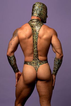 The snake print has a holographic element for added fantasy and its almost textured. It's really a fantastic product AND the matching gauntlets are included. The snake print hood is sold separately.